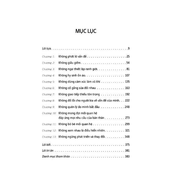 Cuốn sách dành cho mọi ai đang có mối quan hệ – từ yêu đương đến hôn nhân – và muốn nó trở nên bền vững. Bạn sẽ nhận diện được các thói quen gây tổn hại như: giao tiếp thiếu tôn trọng, im lặng vì sợ mâu thuẫn, mong đợi người kia thay đổi theo ý mình... Không ai hoàn hảo, và tình yêu cũng không cần hoàn hảo – nhưng nếu đủ mạnh mẽ để nhìn lại chính mình, bạn sẽ đủ mạnh mẽ để thay đổi cả mối quan hệ.