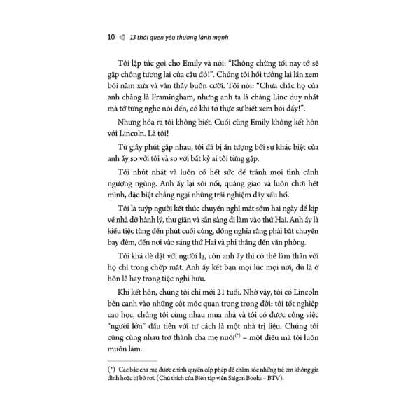 Có bao giờ bạn tự hỏi: Tại sao dù đã cố gắng hết mức, tình yêu vẫn dần nhạt phai? Có thể bạn đang chăm chỉ vun đắp bằng những điều nên làm – nhưng lại vô tình giữ lại những điều không nên làm. Trong cuốn 13 Thói Quen Yêu Thương Lành Mạnh, nhà trị liệu tâm lý Amy Morin – tác giả của 13 điều người có tinh thần thép không làm – đưa ra một hướng tiếp cận khác biệt: Loại bỏ những thói quen xấu đang âm thầm làm tổn thương tình yêu.