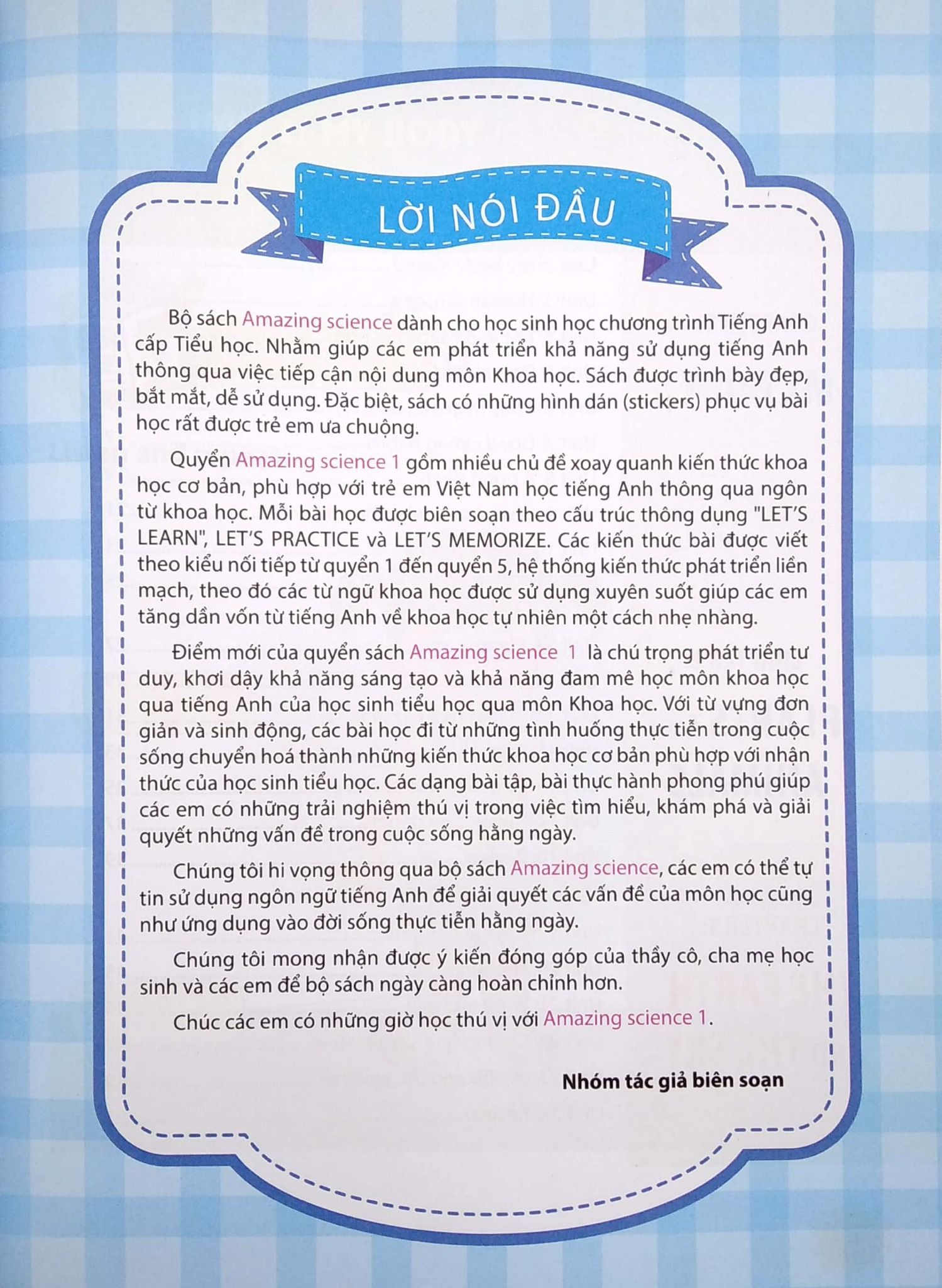 Chúng tôi hi vọng thông qua bộ sách Amazing Science, các em có thể tự tin sử dụng ngôn ngữ tiếng Anh để giải quyết các vấn đề của môn học cũng như ứng dụng vào đời sống thực tiễn hàng ngày.