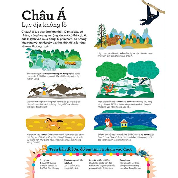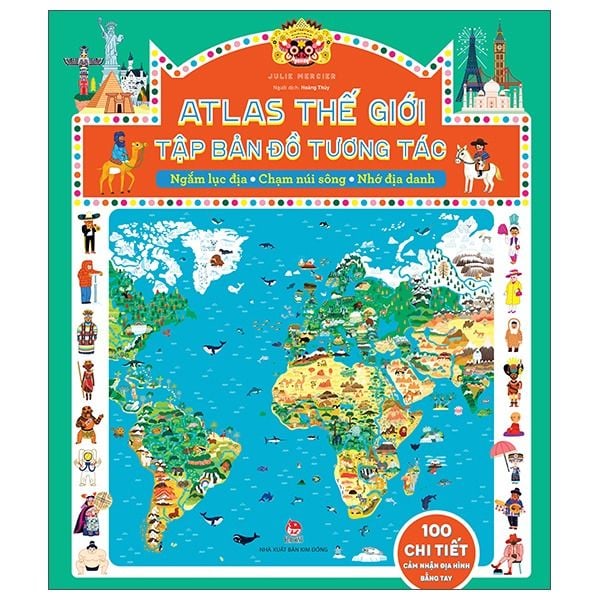 Atlas Thế Giới – Tập Bản Đồ Tương Tác mang đến phiên bản Atlas tương tác độc đáo giúp các bạn nhỏ có thể ngắm lục địa, chạm núi sông và nhớ địa danh bằng đầu ngón tay. Với hơn 11 bản đồ địa lí lớn, 1.000 từ khóa về quốc gia, địa danh, động thực vật cùng hàng trăm chi tiết in nổi, cuốn sách mở ra chuyến hành trình khám phá thế giới đầy sống động, giúp khơi gợi sự tò mò, đánh thức trí tưởng tượng, khả năng quan sát cho các bạn nhỏ thông qua những trò chơi thú vị.