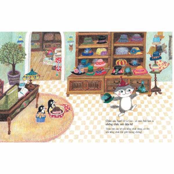 Ngày nào tiệm mũ của cô mèo Cici cũng có rất nhiều vị khách ghé thăm. Có người đến từ những nơi xa lắc, rồi họ xếp thành hàng dài dằng dặc để chờ Cici trổ tài thiết kế những chiếc mũ phù hợp với mỗi người, giúp người đội thêm phần tự tin. Thế rồi một ngày nọ, khi ghé tiệm cúc áo, Cici bỗng tìm thấy một mục đích mới khi làm mũ: Không chỉ khiến khách hàng thêm phần xinh đẹp, mà những chiếc mũ còn phải mang đến cho mọi người cảm giác ấm áp, bình yên!