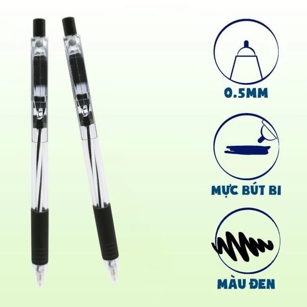 Với màu mực tươi mới, đầu bi 0.5mm, mẫu bút bi này đảm bảo nét chữ trơn đều, cảm giác viết mềm mại hỗ trợ tối đa cho việc ghi chép hàng ngày.