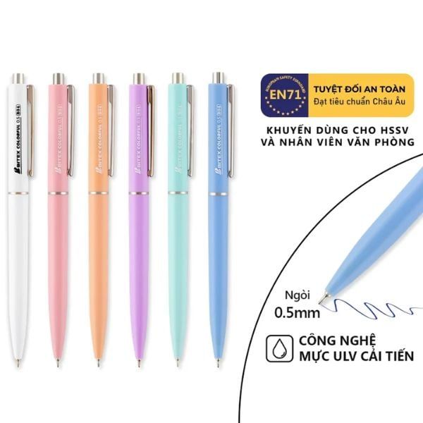 Mực bút bi được kiểm định an toàn, không độc hại theo tiêu chuẩn quốc tế.