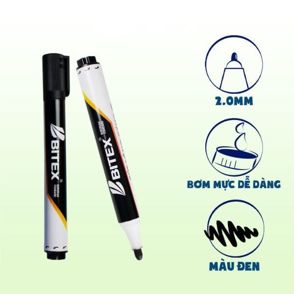 Bút có thể viết được trên nhiều bề mặt như bảng, inox, gỗ, nhựa, kim loại,... và có thể dễ dàng lau chùi.
