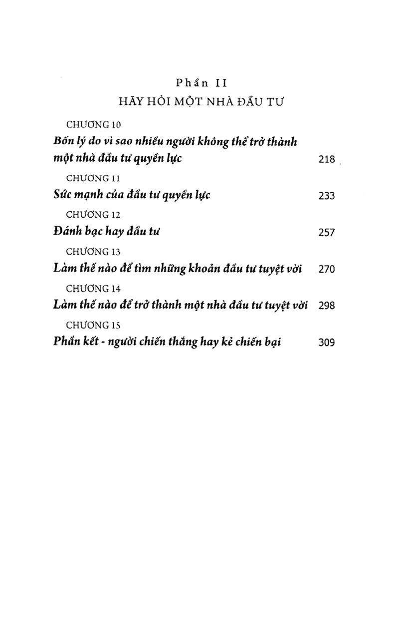 Quyển sách này sẽ cung cấp cho bạn kiến thức, kinh nghiệm để kiểm soát tiền bạc và tương lai tài chính của mình, và làm ra nhiều tiền hơn; giúp bạn hiểu tại sao một số nhà đầu tư thu được nhiều lợi nhuận nhanh hơn với ít nguy cơ, tiền bạc và thời gian hơn; đưa ra rất nhiều chiến lược đầu tư để bạn có thể xem xét và lựa chọn…
