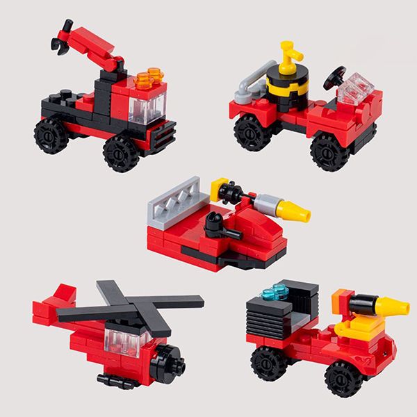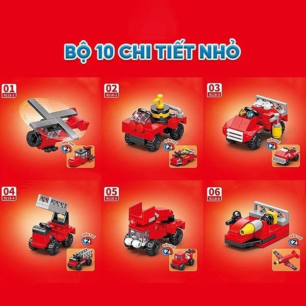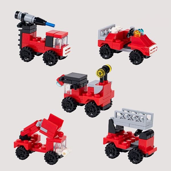 - Để nâng cấp sức mạnh của bộ 10 phương tiện cứu hộ và cứu hỏa chuyên dụng, bé có thể lắp ghép và thử sức sáng tạo bằng cách kết hợp và lắp ghép các xe nhỏ trở thành phương tiện cứu hỏa cứu hộ đa năng với 323 miếng ghép.