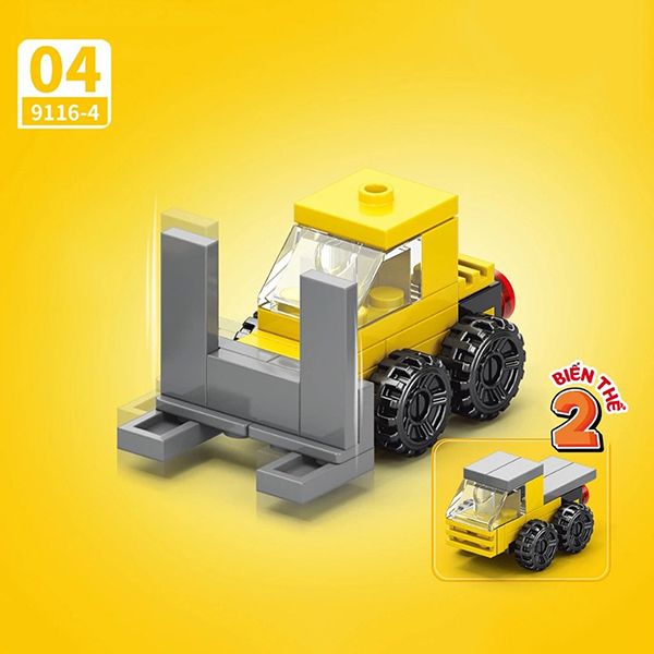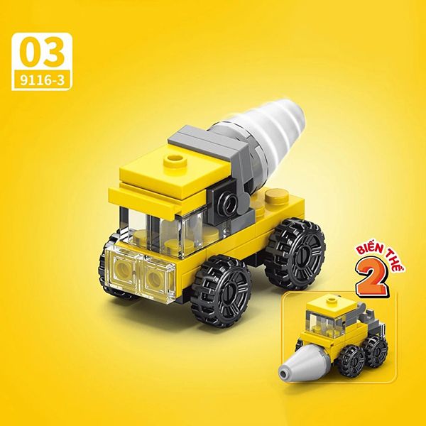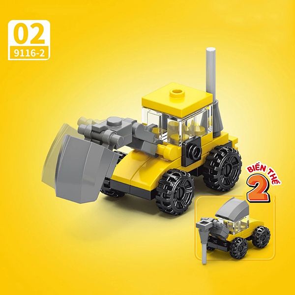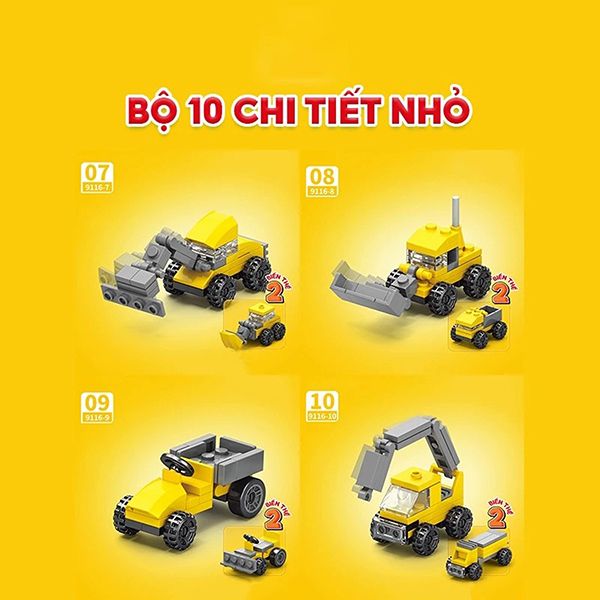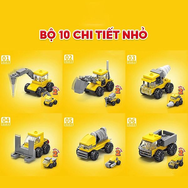 Sau khi hoàn thành 10 xe công trình siêu hạng, bé có thể nâng cao sự sáng tạo của mình bằng cách kết hợp để trở thành một chiếc xe lớn, đa năng nhiều chức năng trong 1 với tổng 291 miếng ghép.