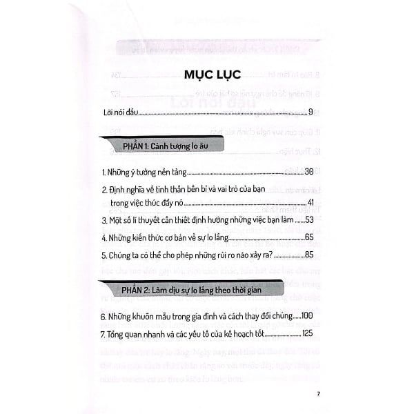 - Phần I (Chương 1 đến 5) tìm hiểu kiến thức về cách thức hoạt động của nỗi lo lắng cũng như cách thức hoạt động của tinh thần bền bỉ - yếu tố đối lập với nó.
