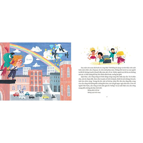 Bạn có biết theo truyện cổ tích Ireland, dưới chân cầu vồng, nơi nó chạm đất, chính là chỗ những chú yêu tinh chôn vàng? Trong khi đó, một số bộ lạc châu Phi vẫn cho rằng đầu cong của cầu vồng chỉ đường đến những kho báu: nơi cất giữ ngọc ngà châu báu. Ai mà không thích kho báu cơ chứ!