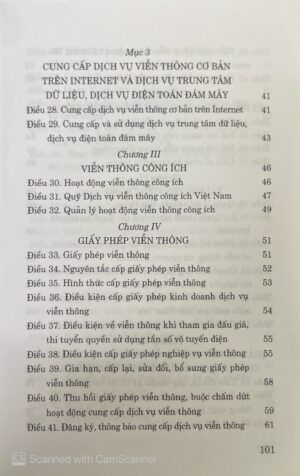 Luật Viễn thông năm 2023 được Quốc hội khóa XV, kỳ họp thứ 6 thông qua ngày 24/11/2023, có hiệu lực thi hành từ ngày 01/7/2024. Luật gồm 10 chương, 73 điều, có những điểm mới cơ bản như: mở rộng phạm vi điều chỉnh một số dịch vụ mới như: dịch vụ trung tâm dữ liệu, dịch vụ điện toán đám mây, dịch vụ viễn thông cơ bản trên Internet để phù hợp với xu thế chuyển đổi hạ tầng viễn thông thành hạ tầng số; bổ sung các quy định về phát triển hạ tầng viễn thông; bổ sung hoàn thiện các quy định về hoạt động viễn thông công ích; quy định cụ thể các loại tài nguyên viễn thông được phân bổ qua hình thức đấu giá; bổ sung quy định về ngăn chặn sim rác, tin nhắn rác, cuộc gọi vi phạm pháp luật; cải cách thủ tục hành chính, quản lý thị trường viễn thông…
