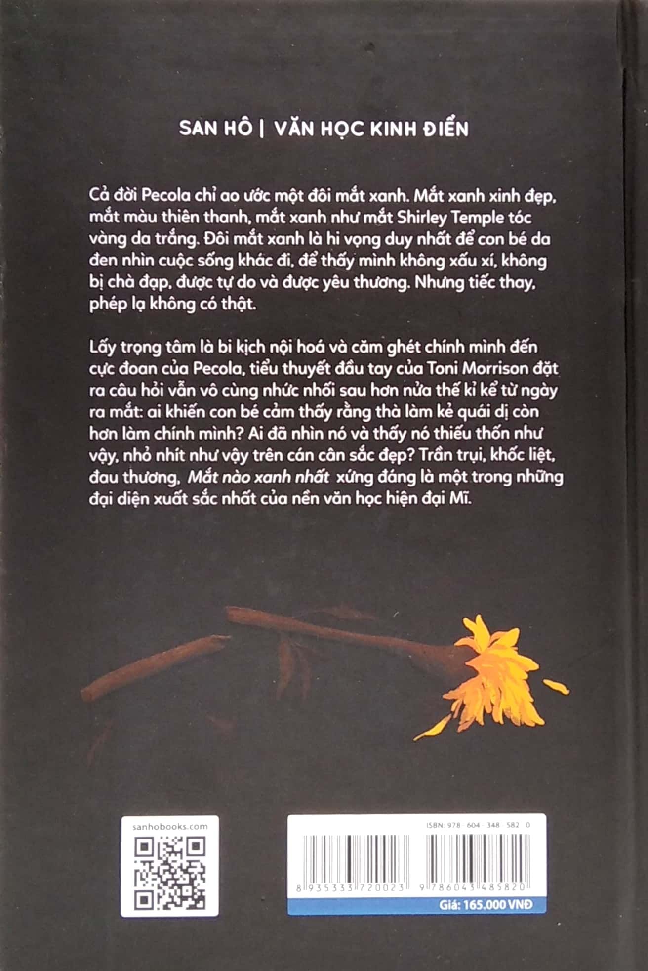 Lấy trọng tâm là bi kịch nội hoá và căm ghét chính mình đến cực đoan của Pecola, tiểu thuyết đầu tay của Toni Morrison đặt ra câu hỏi vẫn vô cùng nhức nhối sau hơn nửa thế kỉ kể từ ngày ra mắt: ai khiến con bé cảm thấy rằng thà làm kẻ quái dị còn hơn làm chính mình? Ai đã nhìn nó và thấy nó thiếu thốn như vậy, nhỏ nhít như vậy trên cán cân sắc đẹp? Trần trụi, khốc liệt, đau thương, Mắt nào xanh nhất xứng đáng là một trong những đại diện xuất sắc nhất của nền văn học hiện đại Mĩ.