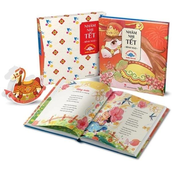 Có thể thấy năm nay Nhâm nhi Tết Bính Ngọ đã có một đổi mới, hộp sách chắc chắn hơn, dễ dàng rút mở, quà sách đính kèm là chú ngựa gỗ xinh xắn được đóng ngay phía sau bìa 4 dễ dàng nhìn thấy.