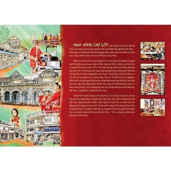 Từng bức tranh trong cuốn sách này là sự trân trọng và nỗ lực lưu giữ của người họa sĩ dành cho Chợ Lớn, đặc biệt trong bối cảnh Sài Gòn đang chuyển mình, nhiều giá trị văn hóa và kiến trúc cổ đứng trước nguy cơ mai một. Cuốn sách cũng là lời mời gọi bạn đọc cùng dạo bước, tìm hiểu cảnh sắc, con người Chợ Lớn, góp một mảnh ván vào chiếc cầu nối liền hai dân tộc Hoa - Việt, cùng là cư dân trên đất nước Việt Nam.
