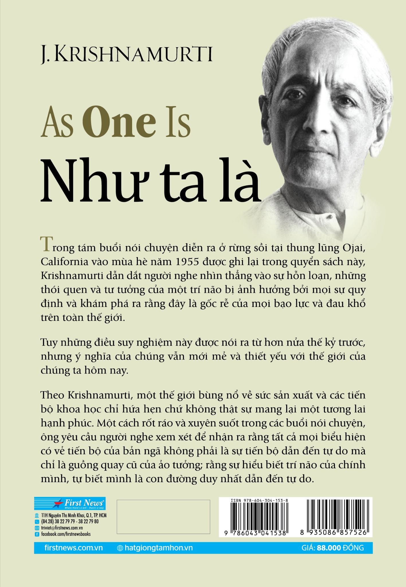 Với ngôn từ giản dị, cách tiếp cận trực diện cùng những lập luận thuyết phục vốn có của Krishnamurti, “Như ta là” mang đến cho người đọc những kiến thức khai sáng đầy thông tuệ, những nhận thức mới mẻ về mặt tâm linh. Những điều suy nghiệm này tuy đã được nói ra từ hơn nửa thế kỷ trước nhưng vẫn chứa đựng những giá trị mới mẻ và thiết thực đối với thế giới cho đến ngày hôm nay.