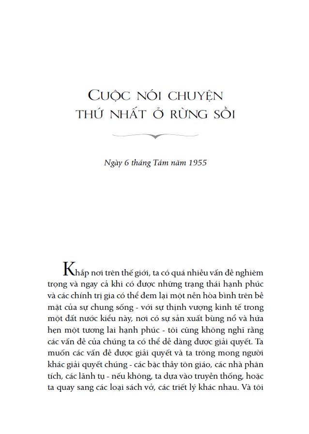 Quyển sách tường thuật nội dung tám buổi nói chuyện có tính ngẫu hứng của Krishnamurti trước hàng trăm người, diễn ra dưới bóng râm của một rừng sồi nhỏ nơi thung lũng Ojai (California, Hoa Kỳ) vào mùa hè năm 1955. Tại đây, Krishnamurti đã dẫn dắt người nghe nhìn thẳng vào sự hỗn loạn, những thói quen và tư tưởng của một trí não bị ảnh hưởng bởi mọi sự quy định, đồng thời khám phá ra rằng đây là gốc rễ của mọi bạo lực cũng như khổ đau trên toàn thế giới.