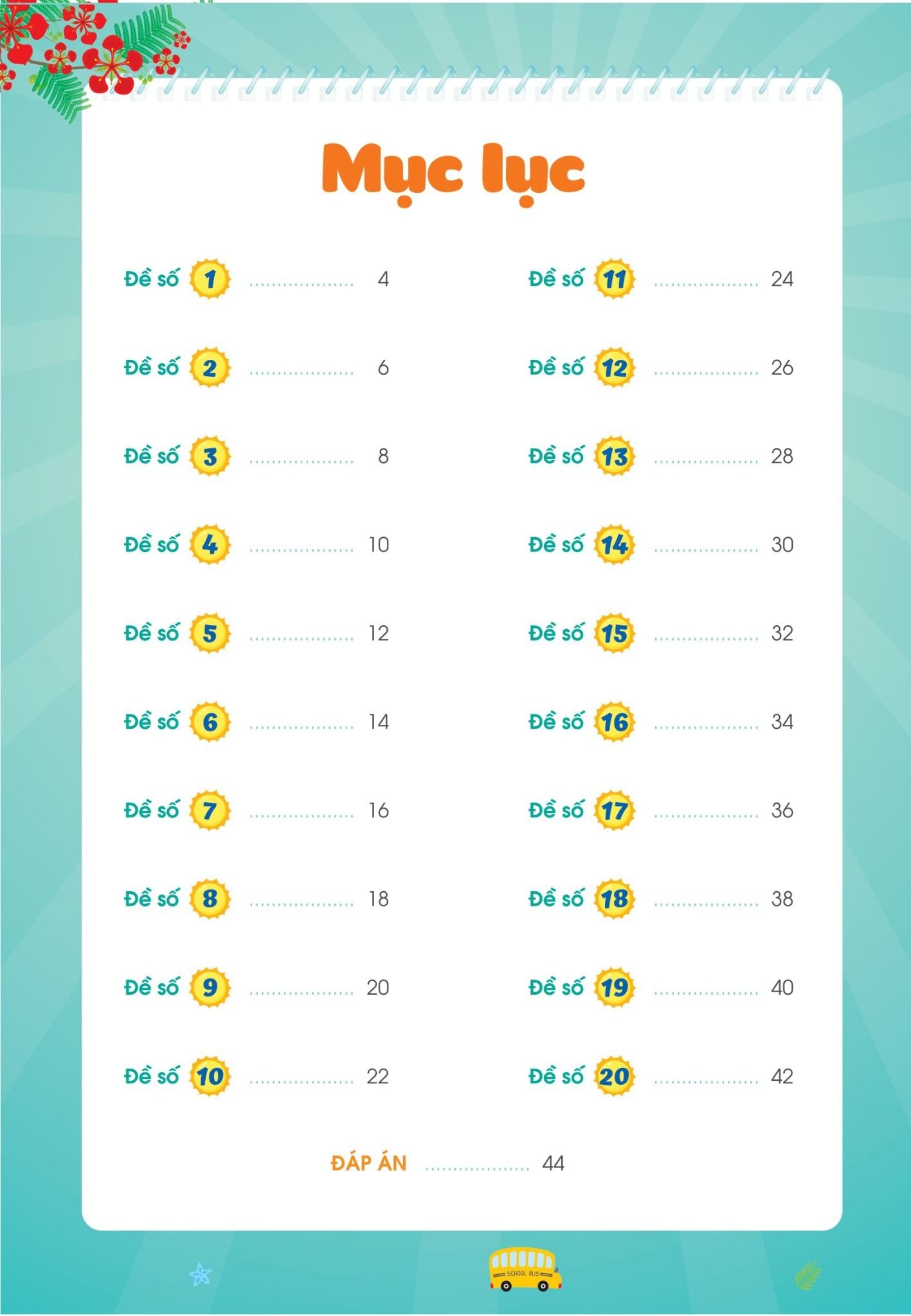 Cuốn sách bao gồm 20 bộ đề, mỗi bộ đề gồm 2 phần trắc nghiệm và tự luận. Điều này giúp các em thực hành và nắm vững kiến thức thông qua các dạng bài tập khác nhau. Sự đa dạng này cũng giúp rèn luyện khả năng tư duy, suy luận và kích thích trí tưởng tượng của các em nhỏ.
