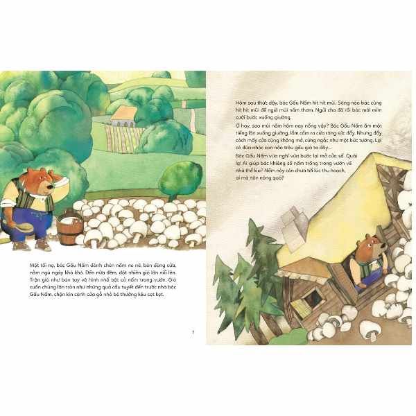 Bác Gấu thích trồng nấm nhất. Trong vườn, bên đường, trên mái nhà đâu đâu cũng là nấm, mọi người bèn gọi bác là Gấu Nấm. Nấm của bác trắng tươi ngon ngọt. Không chỉ các bạn thú yêu thích mà các cô cậu bé cũng mê. Ngày nọ, được một cậu bé tặng thanh sô cô la, bác Gấu Nấm dùng nó để trồng loại nấm sô cô la ngon tuyệt…