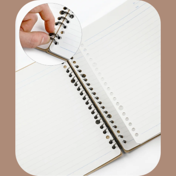 • Khi gập 360 độ, giấy bên trong gần như vừa vặn với bìa ngoài, giúp cho việc ghi chép nhanh được thuận tiện