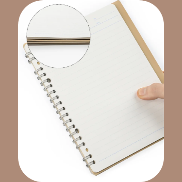 • Khi gập 360 độ, giấy bên trong gần như vừa vặn với bìa ngoài, giúp cho việc ghi chép nhanh được thuận tiện