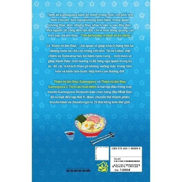 “Thám tử ẩm thực Kamogawa” là tập đầu trong loạt truyện “Kamogawa Shokudo” bán chạy hàng đầu Nhật Bản, mang đến câu chuyện ấm áp nhân văn về một quán ăn diệu kỳ, có sức mạnh chữa lành tâm hồn thực khách bằng những món ngon mang đầy hoài niệm.