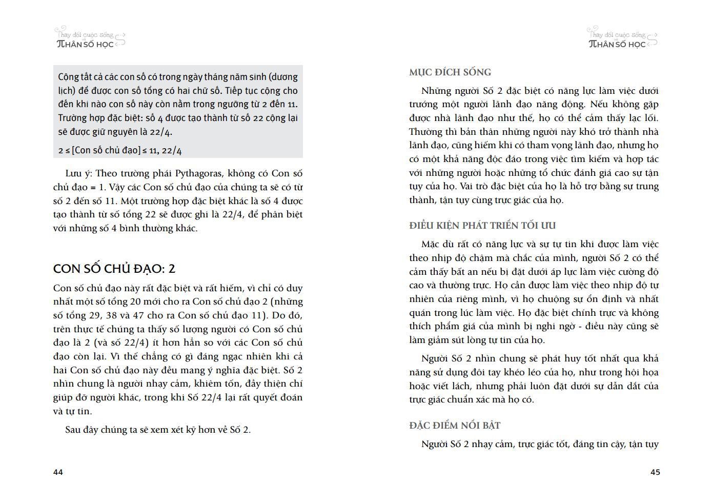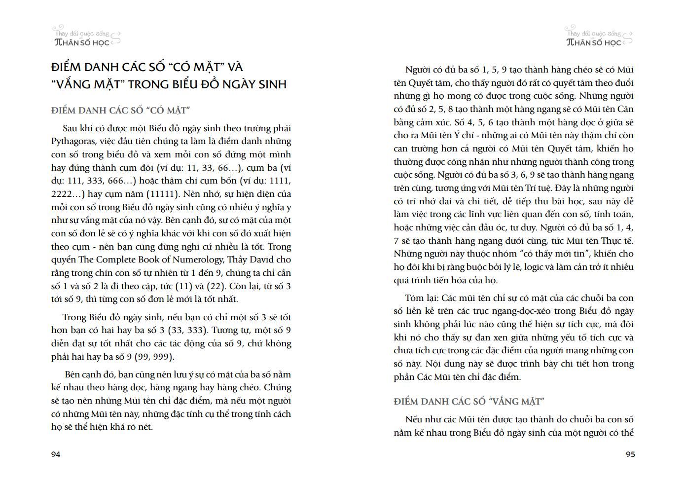 Cuốn sách “Thay đổi cuộc sống với Nhân số học” mang lại đầy đủ những kiến thức quan trọng nhất mà người hứng thú với Nhân số học cần tìm hiểu. Sách bao gồm các kiến thức về ba thể trong một con người, con số chủ đạo, biểu đồ ngày sinh, các mũi tên chỉ đặc điểm, con số ngày sinh, chu kỳ 9 năm, ba giai đoạn và bốn đỉnh cao của đời người cùng ý nghĩa, sức mạnh của cái tên của mỗi người. Các kiến thức này được diễn giải, phân tích và đi kèm các ví dụ cụ thể.