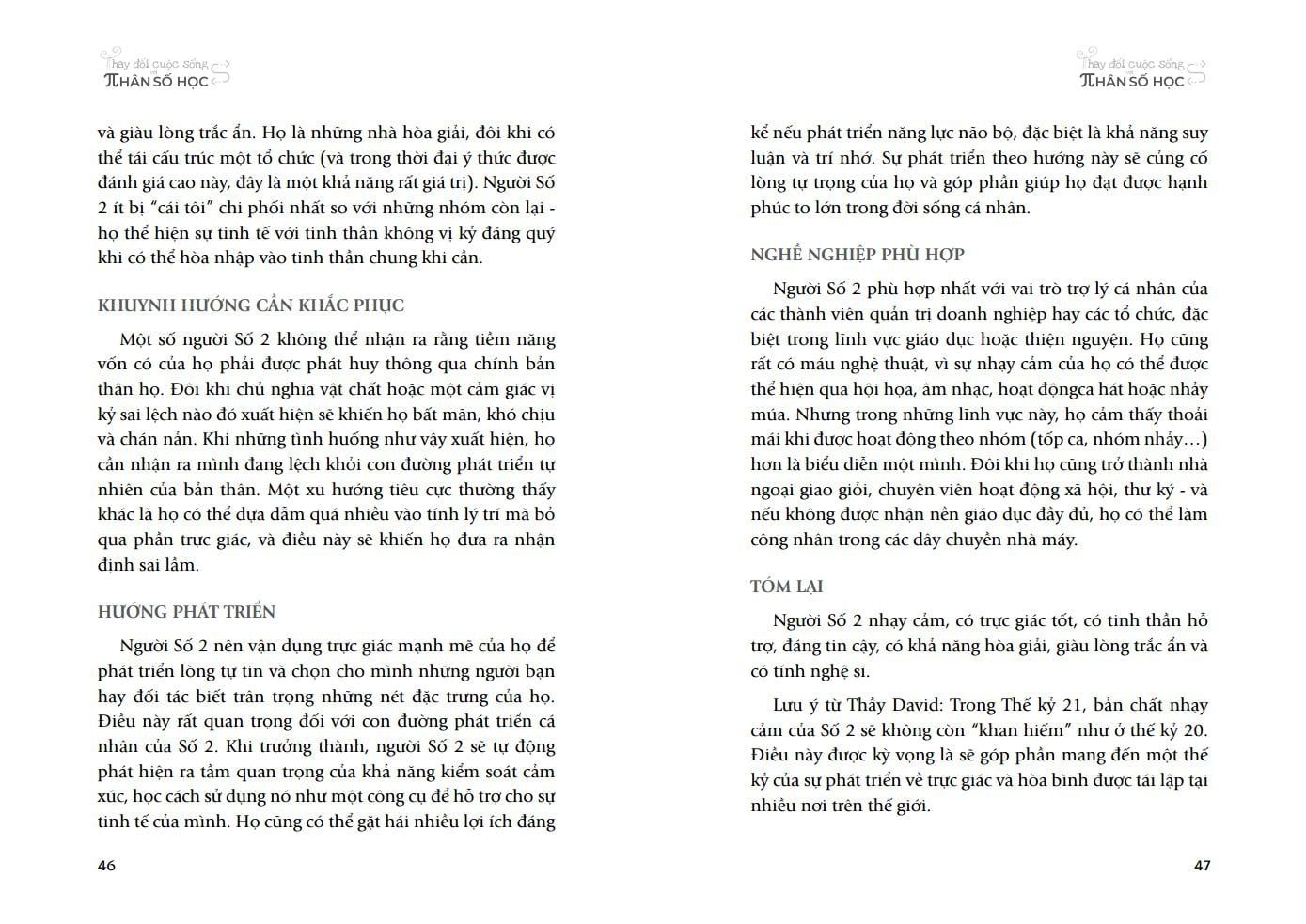 Trong cuộc đời của mỗi con người, chúng ta thường phải mày mò, tìm kiếm con đường riêng cho mình mà không biết chắc con đường đó có phù hợp với mình hay không. Đôi lúc, chúng ta phải phải trầy trật, vấp ngã thậm chí lạc lối mới rút ra được kinh nghiệm, bài học. Nếu hiểu về Nhân số học, và thông qua những kiến thức nhất định về ý nghĩa và sự kết hợp của các con số, chúng ta có thể tự vạch ra cho mình một hướng đi tương đối cụ thể, giảm thiểu được các lần “thử và sai”, từ đó tìm được nhiều niềm vui, hạnh phúc, ý nghĩa trong cuộc sống.