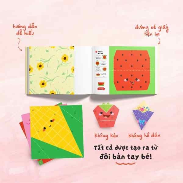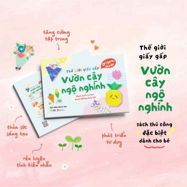 Học mà chơi, chơi mà học với Thế giới giấy gấp: Vườn cây ngộ nghĩnh. Đây là cuốn sách thủ công gấp giấy Origami giúp bé phát triển tư duy, tăng cường sự tập trung, tính kiên nhẫn đồng thời thỏa sức sáng tạo với thế giới thực vật dễ thương.