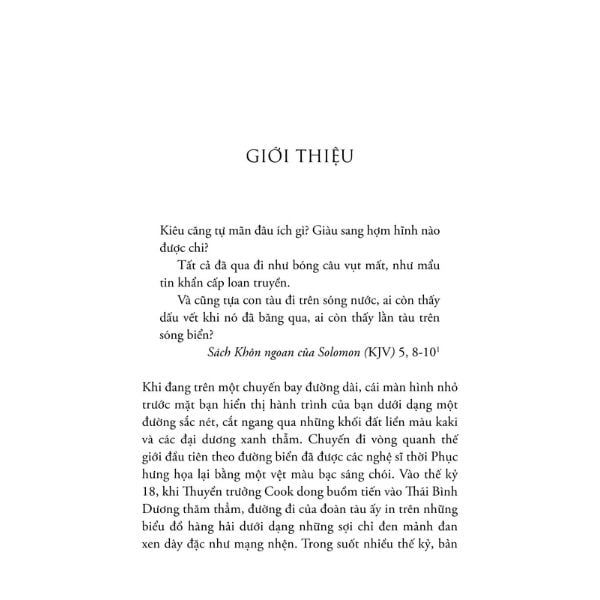 Cuốn sách là lịch sử sâu rộng về cách chúng ta hiểu các tuyến đường di chuyển trên đại dương và cách chúng ta thể hiện chúng như một đường hành trình. Tập trung vào những chuyến đi biển trong thế giới phương Tây từ đầu thế kỷ 16 đến nay, tác giả khéo léo lập luận rằng việc miêu tả những đường này không thể tách rời khỏi chủ nghĩa đế quốc châu Âu, sự trỗi dậy của thời hiện đại và những nỗ lực làm chủ thiên nhiên. Tác giả kể lại lịch sử dấu vết trên đại dương thông qua một loạt câu chuyện và nhân vật sống động, từ chuyến thám hiểm của Thuyền trưởng James Cook vào thế kỷ 18 đến cung đường được mô tả trong Moby Dick và văn hóa đại chúng thế kỷ 19, cho đến việc sử dụng kỹ thuật định vị của hải quân Anh. Dấu xưa trên biển lớn chia sẻ cách những đường vẽ trên bản đồ kể lại câu chuyện táo bạo và thường bi thảm và bạo lực về những chuyến đi vượt đại dương.