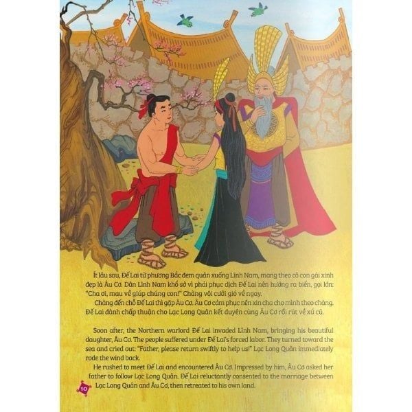 Bộ sách tuyển chọn kỹ lưỡng 10 câu chuyện đặc sắc nhất trong kho tàng cổ tích Việt Nam: Lạc Long Quân Âu Cơ, Chử Đồng Tử Tiên Dung, Mỵ Châu Trọng Thủy, Sơn Tinh Thủy Tinh, Tấm Cám, Từ Thức gặp Tiên, Thạch Sanh, Thánh Gióng, Sọ Dừa, Cây khế.