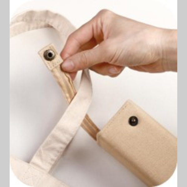 • Có khóa bấm, linh hoạt treo túi bút ở túi tote