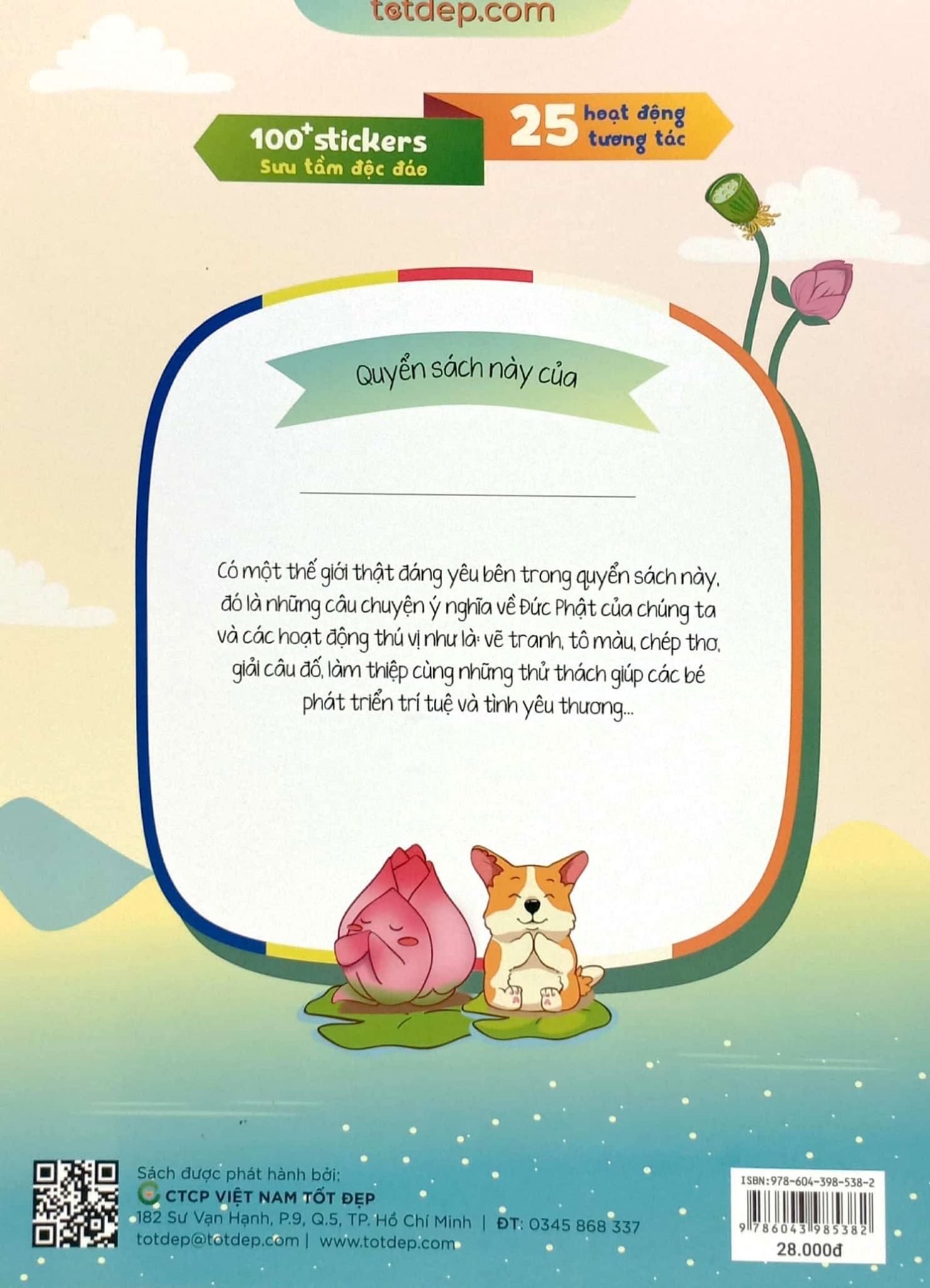 Có một thế giới thật đáng yêu bên trong quyển sách này. đó là những câu chuyện ý nghĩa về Đức Phật của chúng ta và các hoạt động thú vị như là vẽ tranh tô màu, chép thơ giải câu đố, làm thiệp cùng những thử thách giúp các bé phát triển trí tuệ và tình yêu thương.